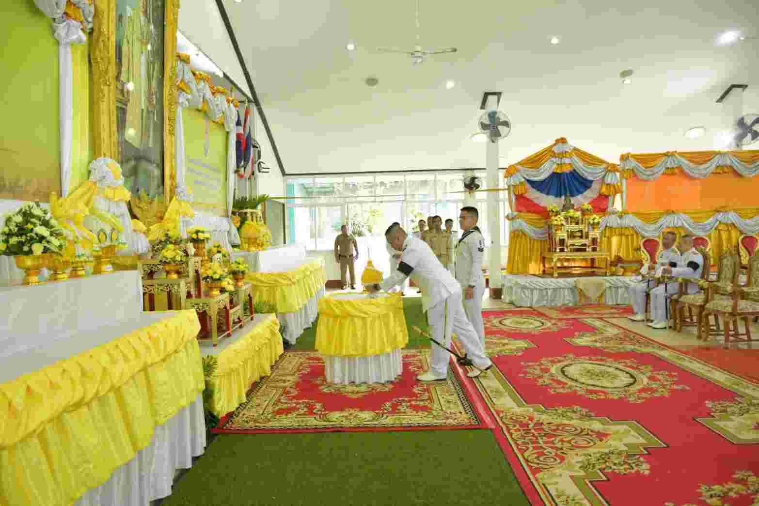รายละเอียดกิจกรรม ในวันศุกร์ที่ 5 ธันวาคม 2568 เวลา 07.00 น. นาวาโท วัชรพงษ์ พรมเหมา ผู้บังคับกองพันฝึกที่ 4 ศูนย์ฝึกทหารใหม่ กรมยุทธศึกษาทหารเรือ ผู้แทนผู้บังคับการศูนย์ฝึกทหารใหม่ กรมยุทธศึกษาทหารเรือ พร้อมด้วยกำลังพล เข้าร่วมกิจกรรมน้อมรำลึกในพระมหากรุณาธิคุณ เนื่องวันคล้ายวันพระบรมราชสมภพพระบาทสมเด็จพระบรมชนกาธิเบศร มหาภูมิพลอดุลยเดชมหาราช บรมนาถบพิตร วันชาติ และวันพ่อแห่งชาติ 5 ธันวาคม 2568 ร่วมกับหน่วยงานราชการในพื้นที่สัตหีบ โดยมี นายอนุศักดิ์ พิริยอมร นายอำเภอสัตหีบ เป็นประธานในพิธี ณ ที่ว่าการอำเภอสัตหีบ จว.ชลบุรี