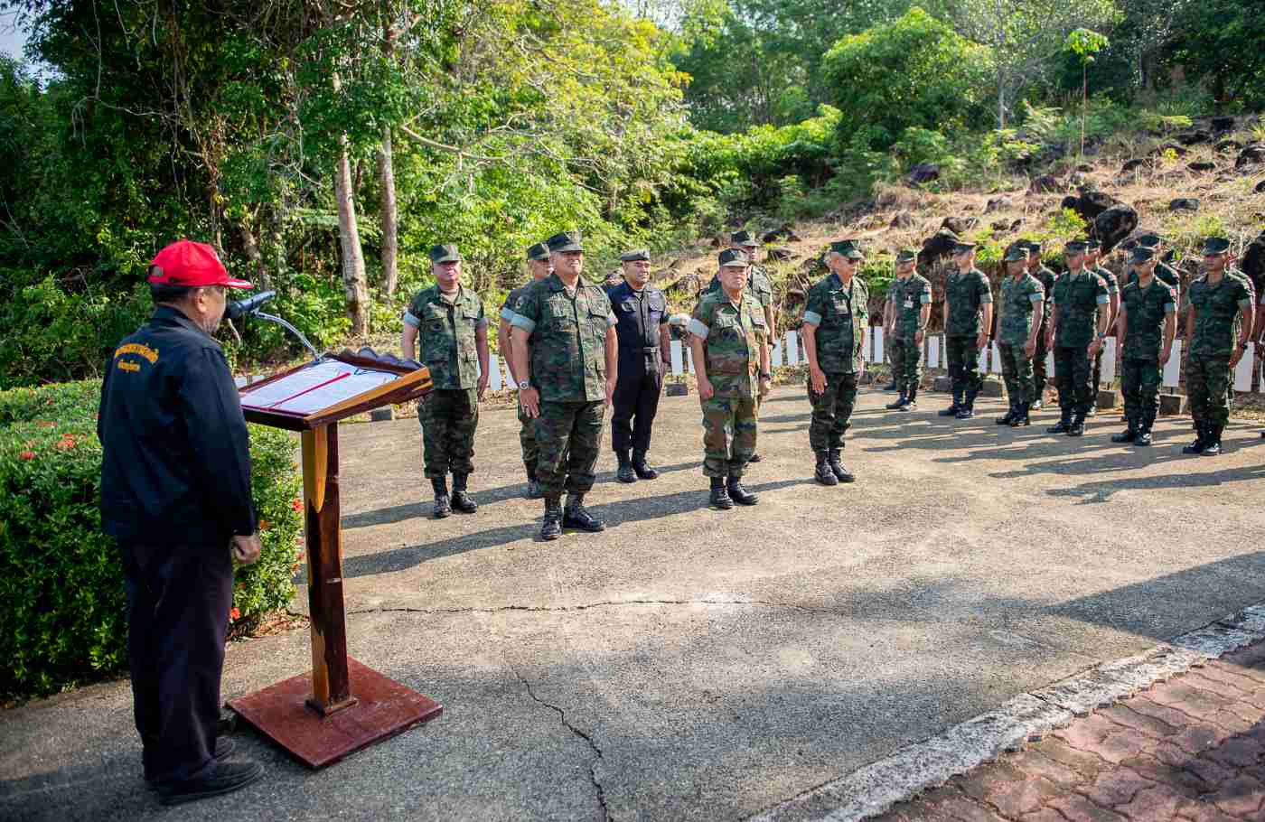 รายละเอียดกิจกรรม เมื่อ 17 มีนาคม 2569 เวลา 0900 น. พล.ร.ต. ชรัมม์ภากร พรหมภากร รองผู้บัญชาการป้องกันชายแดนจันทบุรีและตราด เป็นประธาน พิธีวางพวงมาลา และกล่าวสดุดี ในงานสดุดีวีรชนบ้านโขดทราย ณ อนุสรณ์สถานบ้านโขดทราย ต.หาดเล็ก อ.คลองใหญ่ จว.ตราด