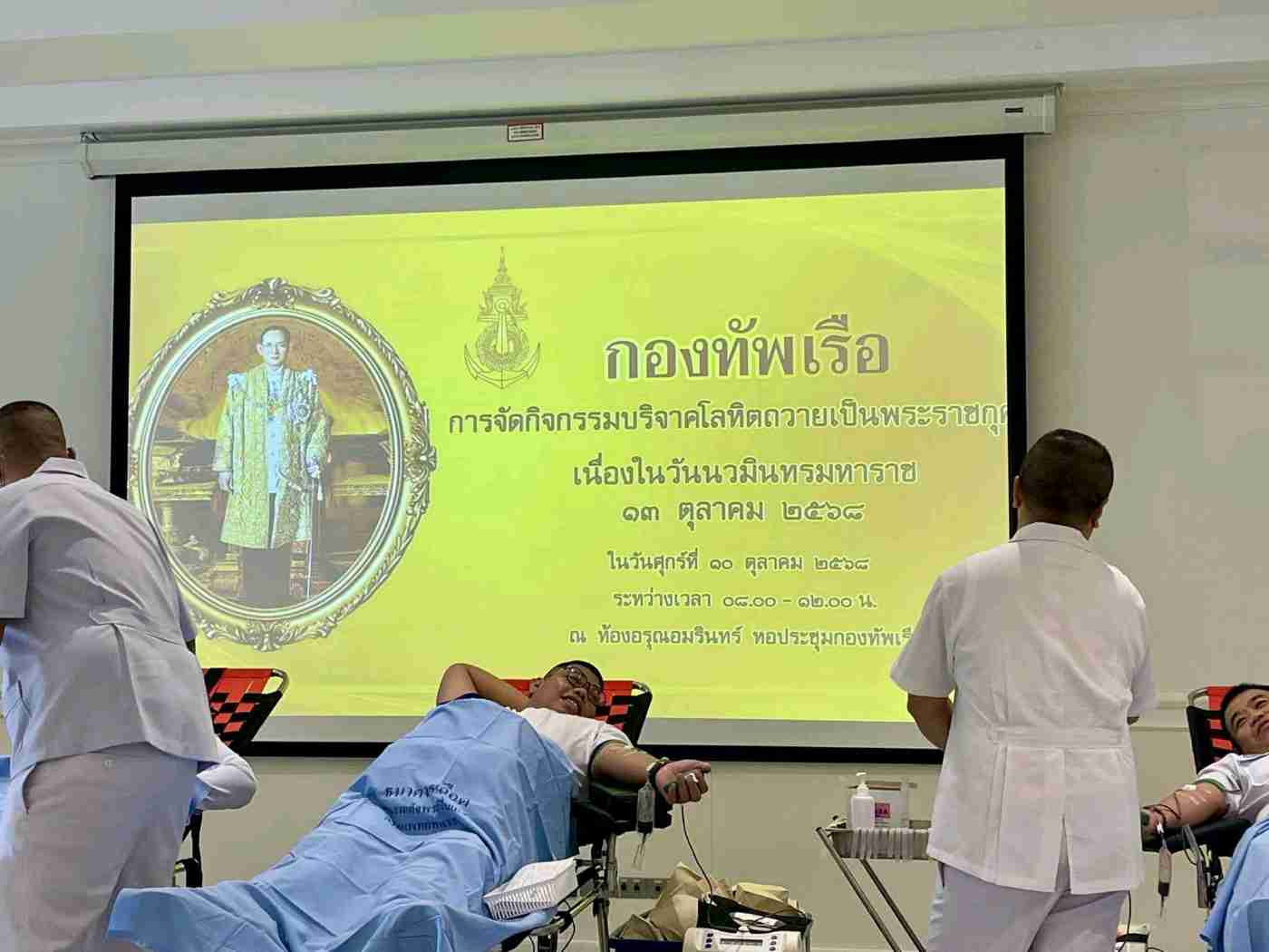 รายละเอียดกิจกรรม ในวันศุกร์ที่ ๑๐ ต.ค.๖๘ สสท.ทร. จัดกำลังพล จำนวน ๔๐ นาย เข้าร่วมกิจกรรมบริจาคโลหิต เพื่อถวายเป็นพระราชกุศล เนื่องในวันนวมินทรมหาราช ๑๓ ต.ค.๖๘ ณ หอประชุม ทร. การปฏิบัติเป็นไปด้วยความเรียบร้อย