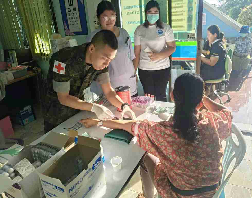 รายละเอียดกิจกรรม เมื่อ ๓ พ.ย.๖๘ เวลา ๐๙๐๐ กปช.จต. โดย ศปศ.๖๑ (ชปศ.๖๑๓ฯ) ) จัดเจ้าหน้าที่พยาบาลให้การสนับสนุน โรงพยาบาลส่งเสริมสุขภาพตำบลบ้านขุนซ่อง ดำเนินการเจาะเลือดตรวจสุขภาพคนไข้ โรคเรื้อรังให้กับประชาชนในพื้นที่ ประจำปี งป.๖๘ เพื่อเป็นการสร้างความสัมพันธ์อันดีระหว่างชุดปฏิบัติงานฯ กับหน่วยงานและประชาชนในพื้นที่รับผิดชอบ ณ รพ.สต.บ้านขุนซ่อง ม.๓ บ.ขุนซ่อง ต.พวา อ.แก่งหางแมว จว.จันทบุรี