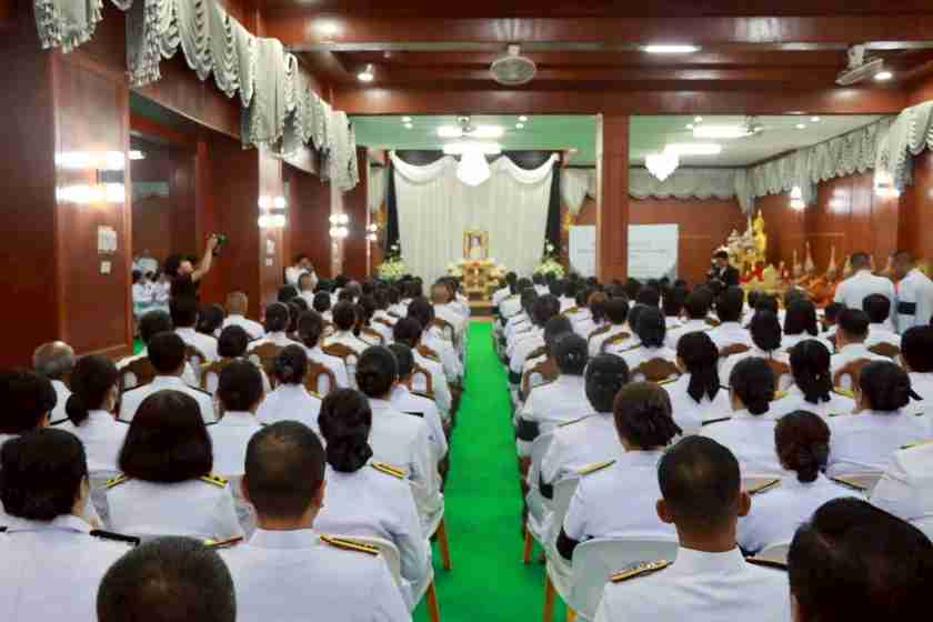 รายละเอียดกิจกรรม พลเรือตรี ปรีชา รัตนสำเนียง รองผู้บัญชาการทัพเรือภาคที่ 2 เป็นผู้แทนผู้บัญชาการทัพเรือภาคที่ 2 พร้อมด้วยกำลังพลร่วมพิธีบำเพ็ญกุศลในวาระครบ 15วัน (ปัณรสมวาร)เพื่อถวายเป็นพระราชกุศล แด่ สมเด็จพระนางเจ้าสิริกิติ์ พระบรมราชินีนาถ พระบรมราชชนนีพันปีหลวง ณ วัดโพธิ์ปฐมวาส พระอารามหลวง โดยมีหัวหน้าส่วนราชการ ข้าราชการ ศาล ทหาร ตำรวจ และประชาชนในจังหวัดสงขลา ร่วมในพิธี